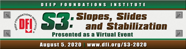 Registration is now open at archive.dfi.org/S3-2020 for DFI’s S3: Slopes, Slides and Stabilization webinar being held Wednesday, August 5, from 11:00 a.m. – 2:00 p.m. EST (US).